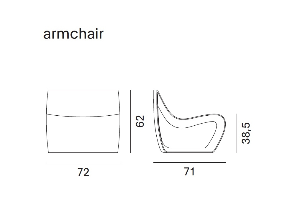 Sign Matt diseñada por Piergiorgio Cazzaniga para MDF Italia es una butaca con estructura portante monomaterial realizada en polietileno, impreso con tecnología de moldeo rotacional, en varios colores. Disponible con o sin orificio de goteo. También es adecuado para uso en exteriores.