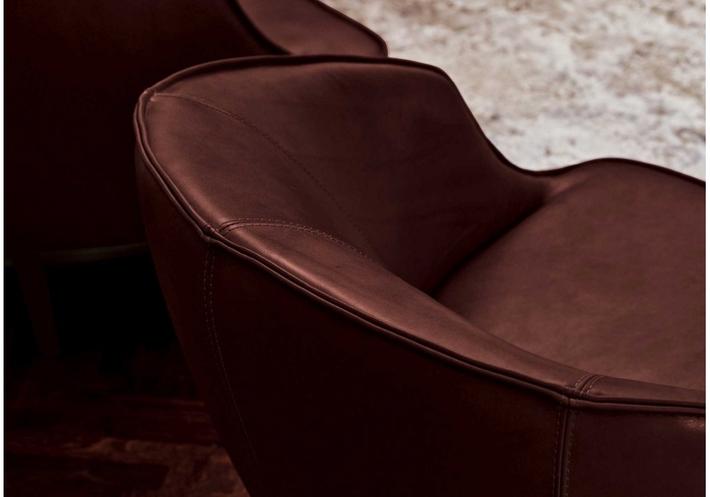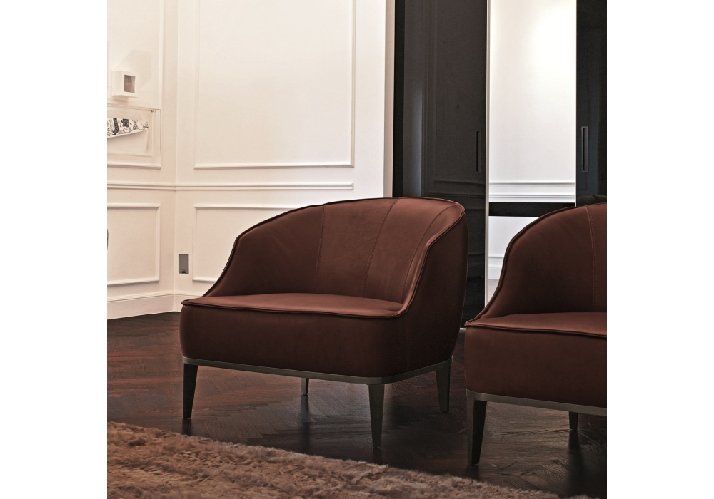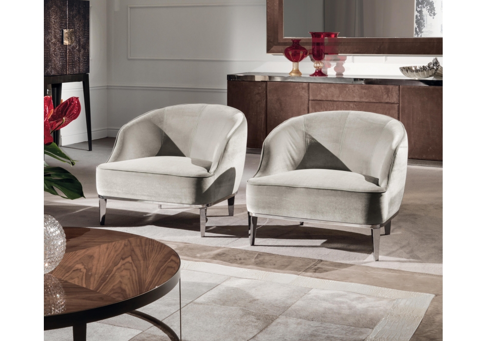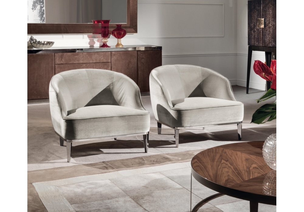 Beth diseñada por Giuseppe Viganò para Longhi es una butaca con estructura en madera de abeto cubierta de espuma de poliuretano en espesor múltiple, con bobinas de bolsillo y fieltro insertado dentro del cojín del asiento. Dado el tratamiento especial, el tapizado en tejido no es desmontable.