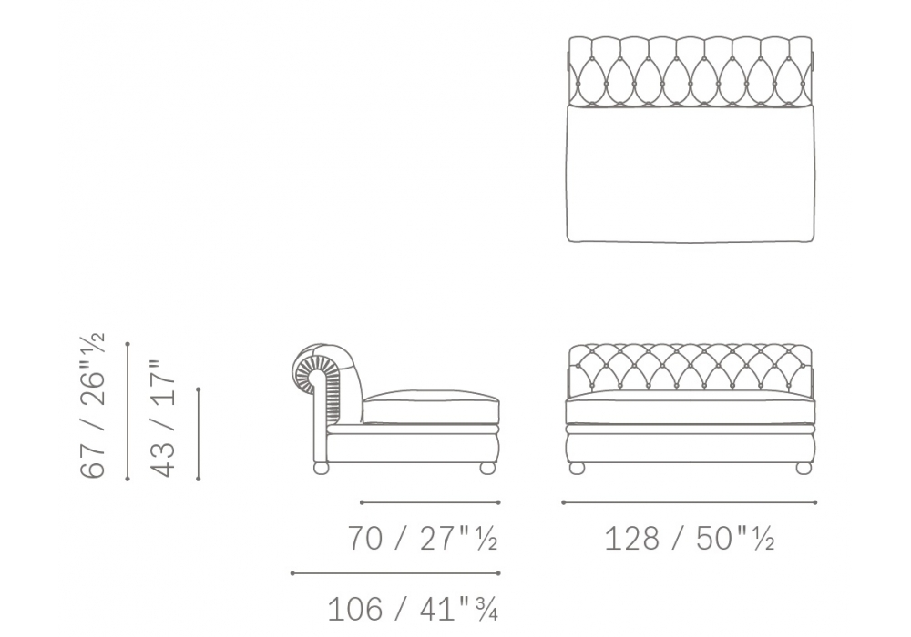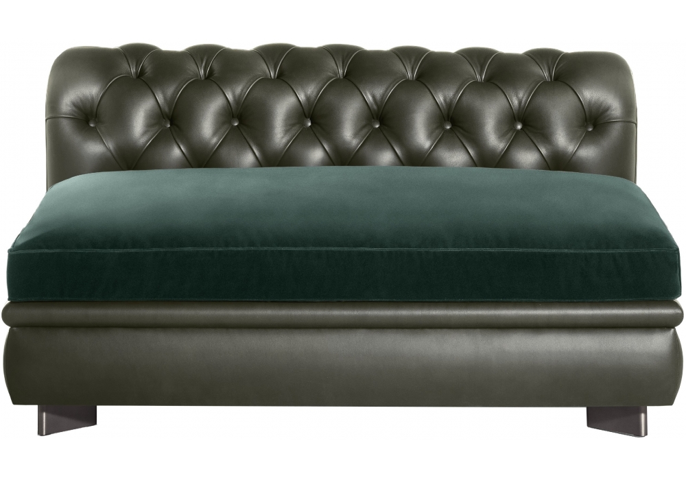 Chester Line diseñado por Renzo Frau para Poltrona Frau es un amplio sillón sin brazos con estructure in madera de haya y rivestimiento enteramente en piel Pelle Frau o u opción que combina piel y tejido. Una fila de las tachuelas de cuero revestidas termina la parte posterior. El capitonné del manto se realiza totalmente a mano.