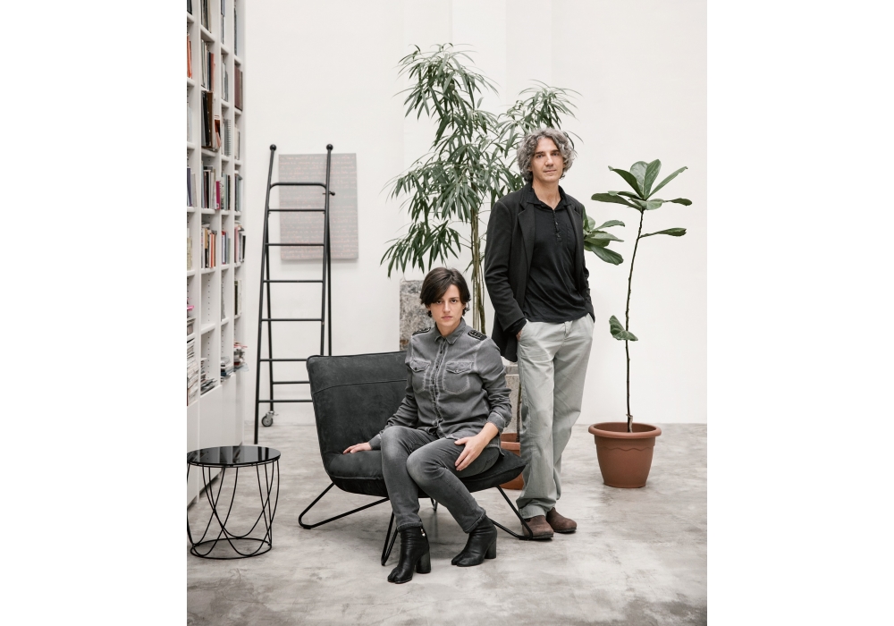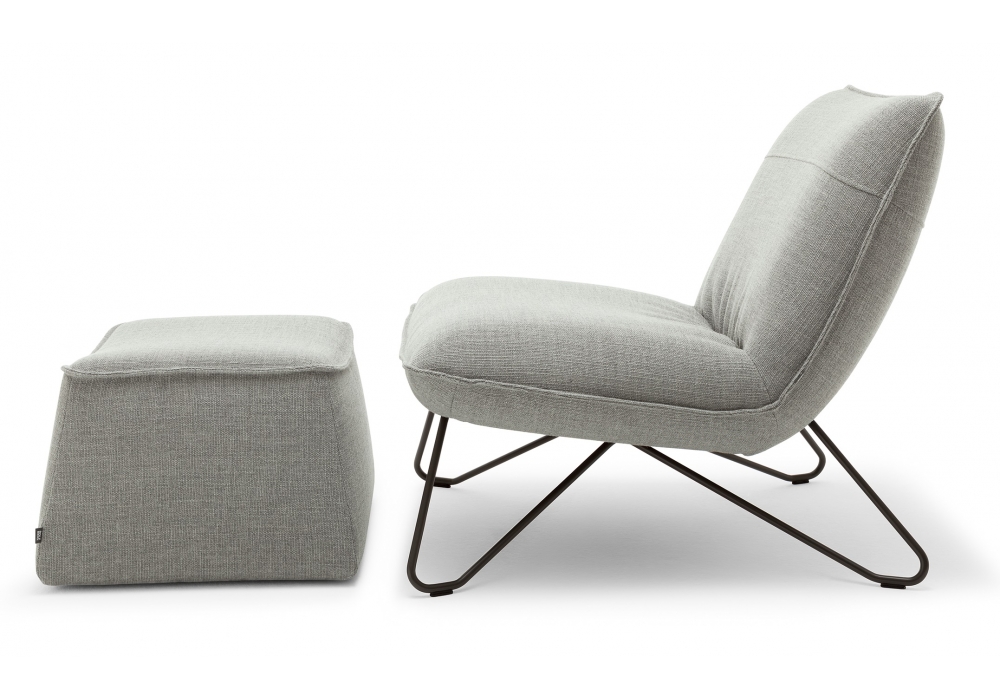 394 firmado par Rolf Benz es un sillón con base de metal disponible en varios acabados: barnizado RAL 9017 negro Tráfico, barnizado RAL 7022 Umbra gris y cromo brillante. Revestimiento disponible en tejido o piel.