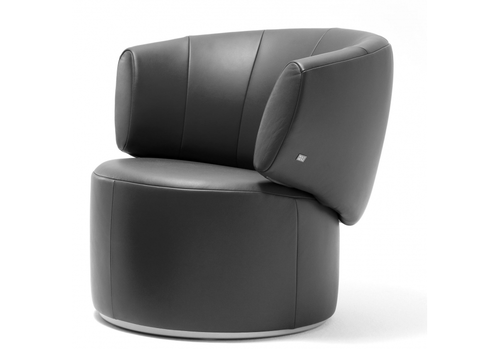 684 firmado par Rolf Benz es un sillón giratorio con base de madera desde carácter extremadamente poco convencional. Disponible con o sin reposapiés. Revestimiento disponible en tejido o piel.