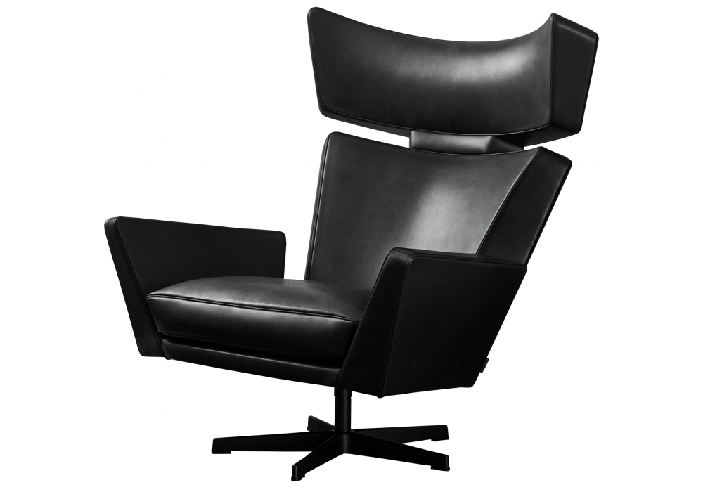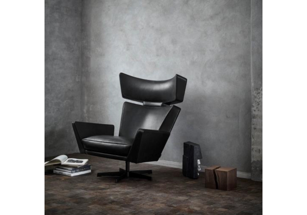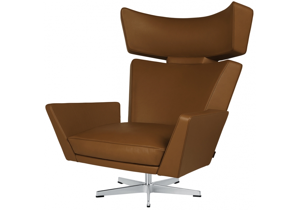 Oksen diseñada por Arne Jacobsen para Fritz Hansen es una butaca giratoria completamente tapizada en piel. La base de cinco radios está disponible en aluminio con recubrimiento de polvo negro o aluminio satinado con columna de acero. Disponible con o sin reposapiés combinado con la butaca.