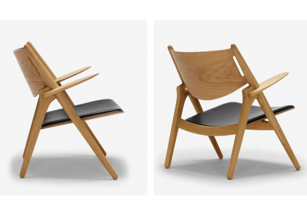 CH28P diseñada por Hans J. Wegner para Carl Hansen & Søn es una butaca con estructura de madera íntegramente en roble macizo o en combinación con estructura de roble y apoyabrazos en nogal. Acolchado de espuma fría retardante de llama CMHR.