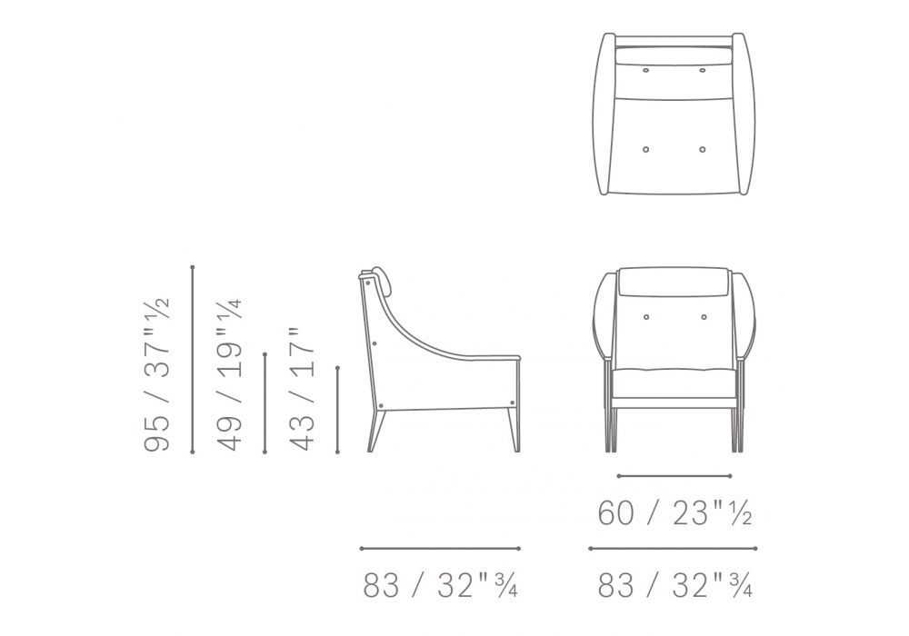 Dezza 48, diseñado por Gio Ponti para Poltrona Frau, es un sillón con reposacabezas de pluma de oca integrado en el respaldo, estructura portante de madera de haya curtida y acolchado de espuma de poliuretano. Pies disponibles en los siguientes acabados: fresno de poro abierto lacado en blanco o negro, chapa de nogal Canaletto. Revestimiento de cuero Pelle Frau® o tejido.