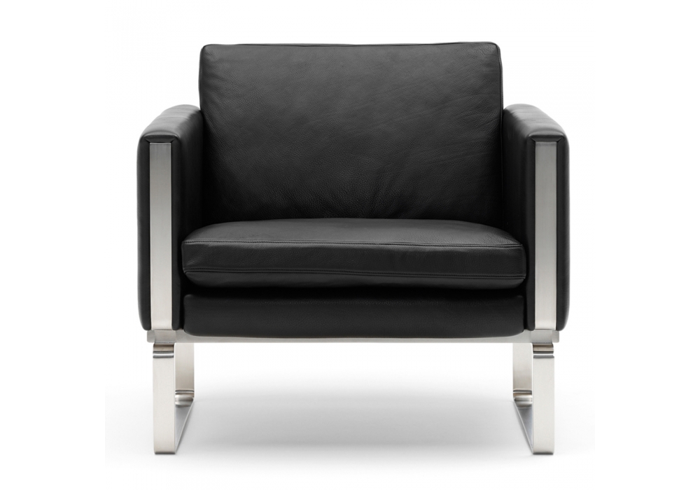 CH101 diseñado por Hans J. Wegner para Carl Hansen & Søn es un sillón con estructura y parte delantera de los apoyabrazos en acero inoxidable. Asiento, cojín, respaldo y apoyabrazos completamente tapizados en cuero.