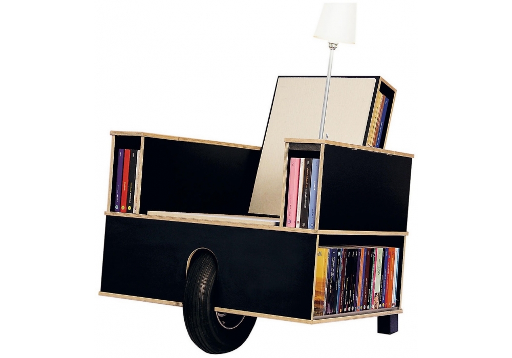 Bookinist diseñada por Nils Holger Moormann para Moormann es una butaca movible particularmente conveniente para la lectura. Se basa en el principio de una carretilla y se puede mover fácilmente de un punto a otro. Aprox. 80 libros se pueden almacenar en los apoyabrazos y en el respaldo. Lámpara de lectura inclusiva y en los apoyabrazos hay 2 compartimientos ocultos para los utensilios de la escritura: marcadores, lápiz, sacapuntas y un bolsillo Moleskine.