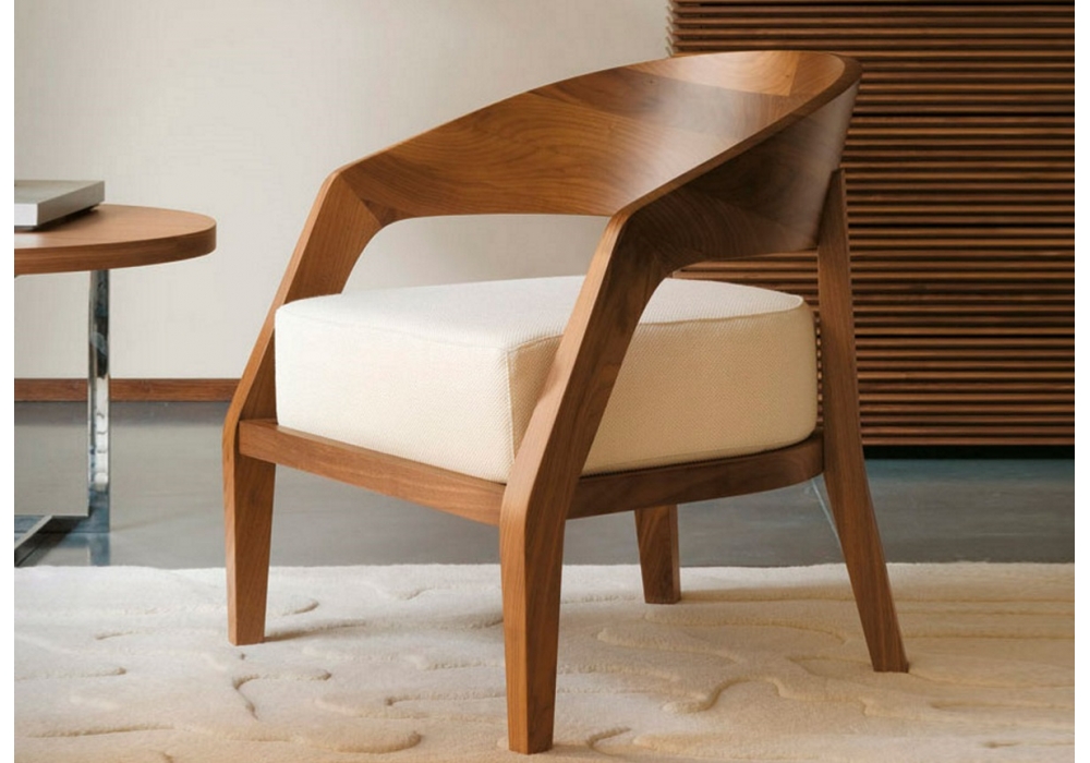 Alba diseñada por M. Walraven para Porada es una butaca con estructura en nogal canaletta macizo, madera de fresno o lacado mate disponible en diferentes acabados. Revestimiento en tela o cuero.