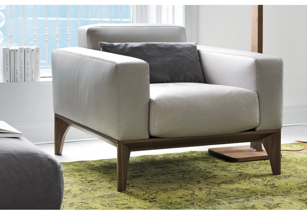 Fellow diseñada por Marconato & Zappa para Porada es una butaca con estructura en nogal canaletta macizo o lacado opaco y revestimiento disponible en diferentes tipos de cuero o tela. Disponible también con cojín para respaldo.