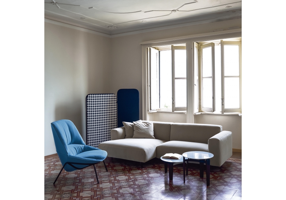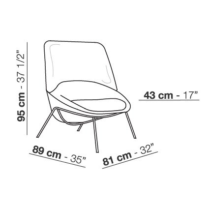 Ladle diseñada por Luca Nichetto para Arflex es una butaca con base de metal lacado en negro y patines protectores de polietileno negro. Cojín de asiento de poliuretano conformado de densidad diferenciada / fibra de poliéster. Tapicería de tela o piel. Disponible en tres dimensiones.