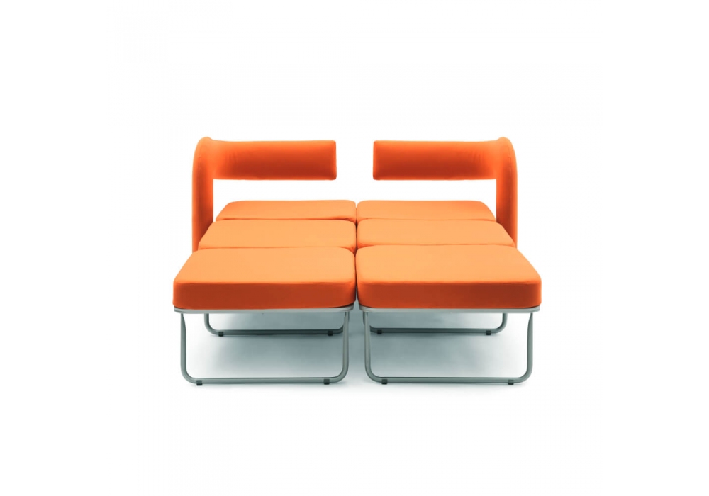 Virgola diseñada por Giulio Manzoni para Campeggi es un sillón-cama con un brazo. Combinando dos sillones puedes crear un pequeño sofá, fácilmente convertible en una cama matrimonial. Disponible en 2 versiones: con apoyabrazos izquierdo o derecho.