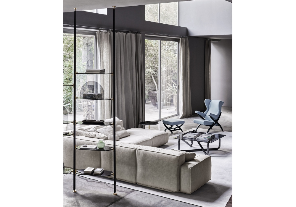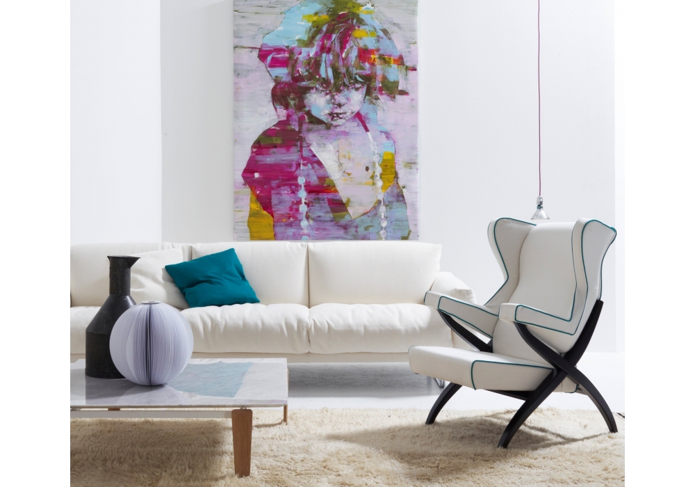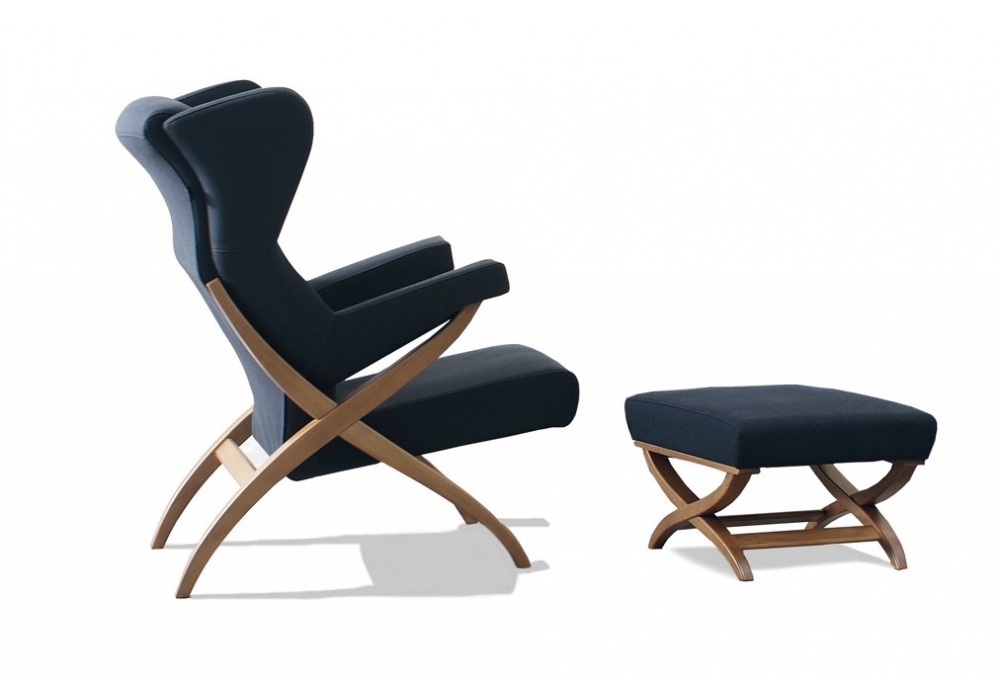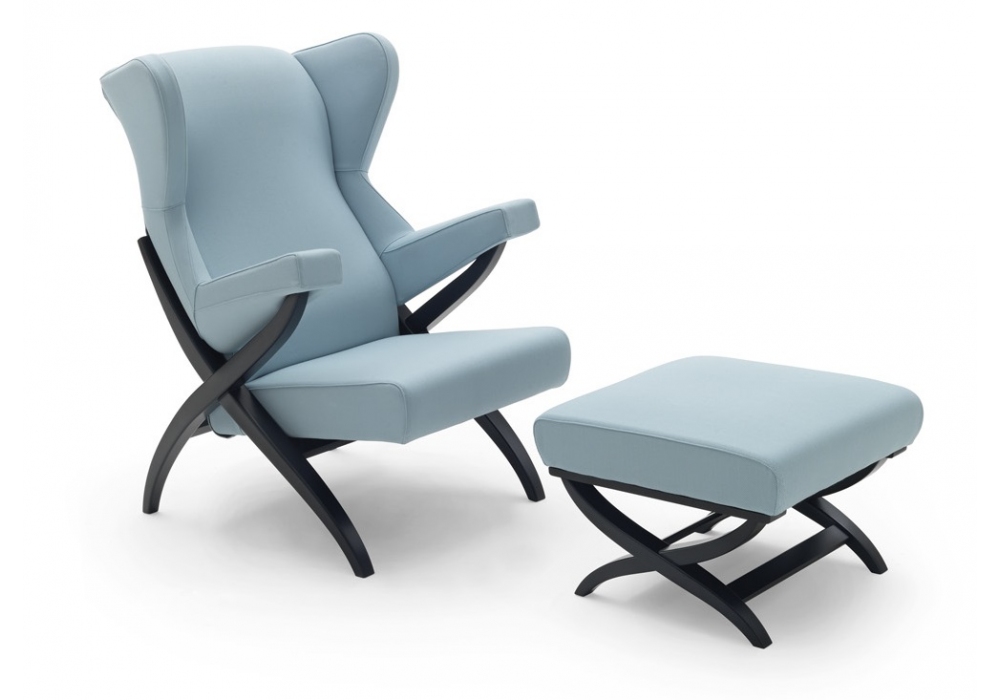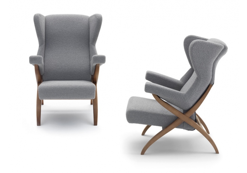 Fiorenza diseñado por Franco Albini para Arflex es un sillòn con estructura en haya teñida nogal o lacado negro. Revestimiento en tejido o piel.