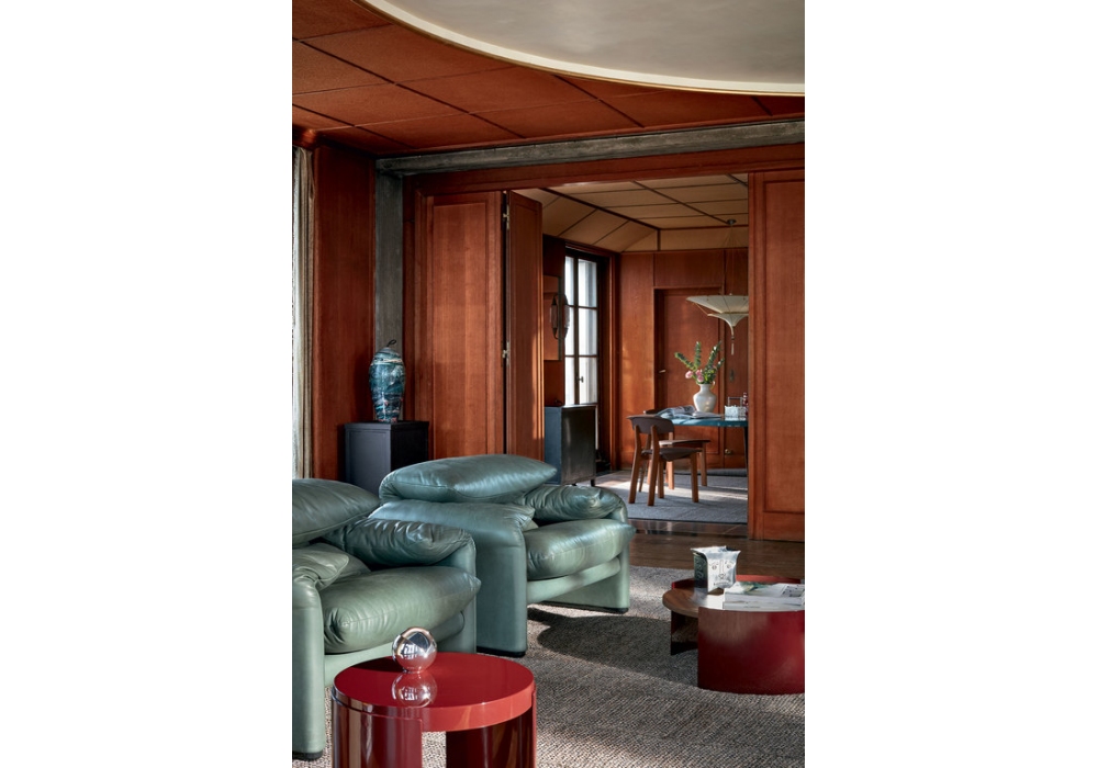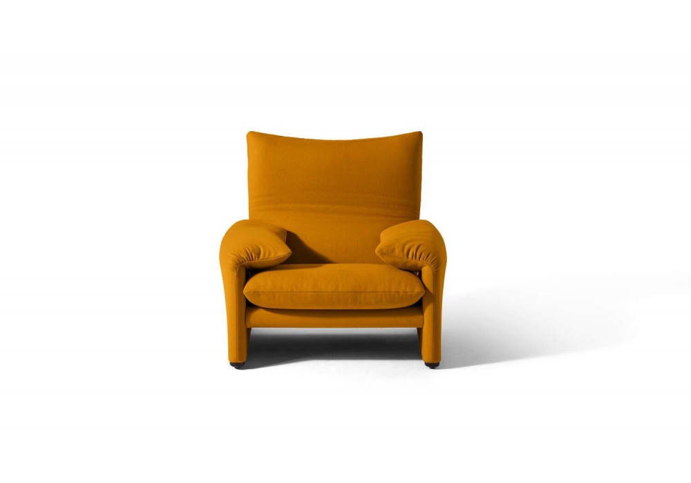 675 Maralunga diseñado por Vico Magistretti para Cassina es un sillòn realizado con base de plástico, relleno de espuma de poliuretano libre de CFC y guata de poliéster y revestimiento de tela o piel.
