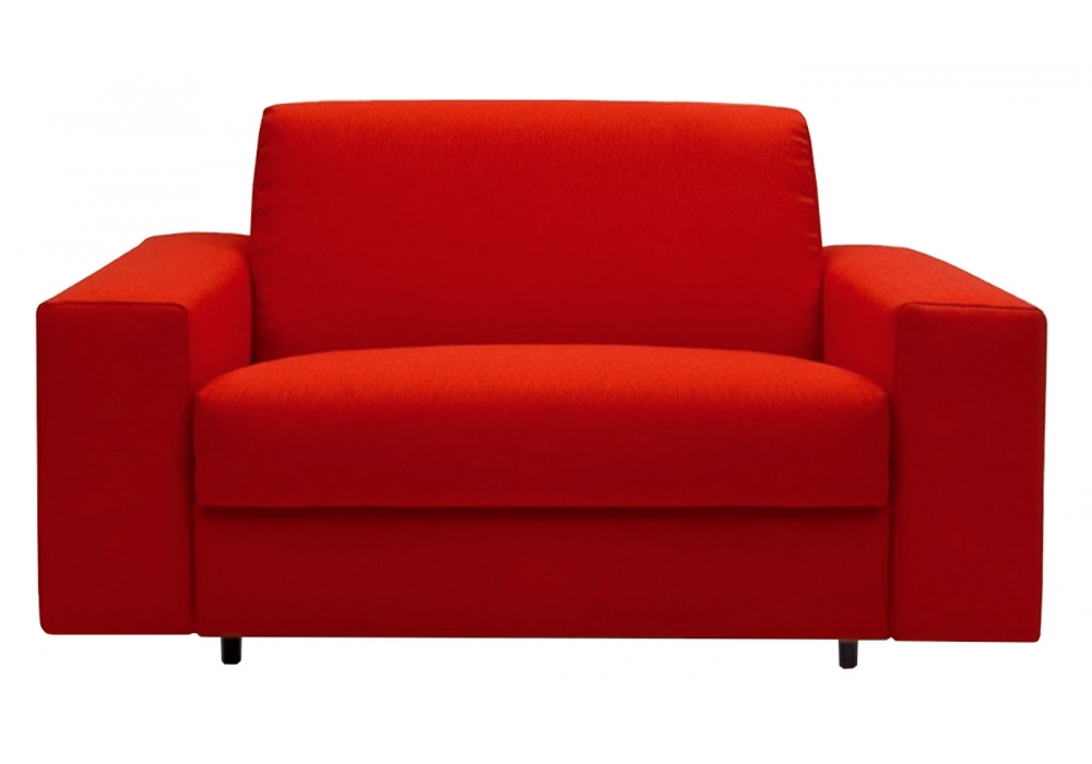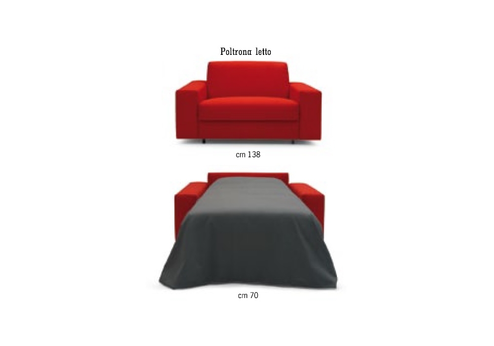 Zazà diseñado por Campeggi es un sillón-cama, ideal para entornos modernos, con un práctico mecanismo de apertura y un contenedor para cojines. Colchón de poliuretano.