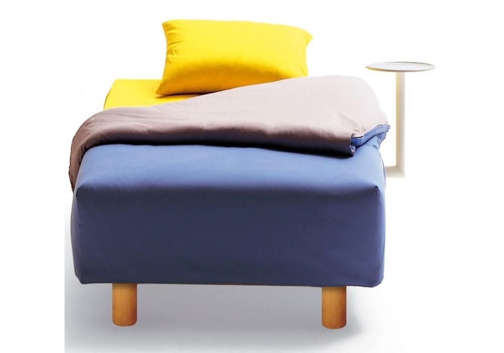Istante diseñado por Campeggi es un sillón-cama con estructura de acero y somier en listones de madera. Colchón de poliuretano expandido de alta densidad. Apoyabrazos reclinables en tres posiciones. Mesas auxiliares giratorias en acero esmaltado blanco.