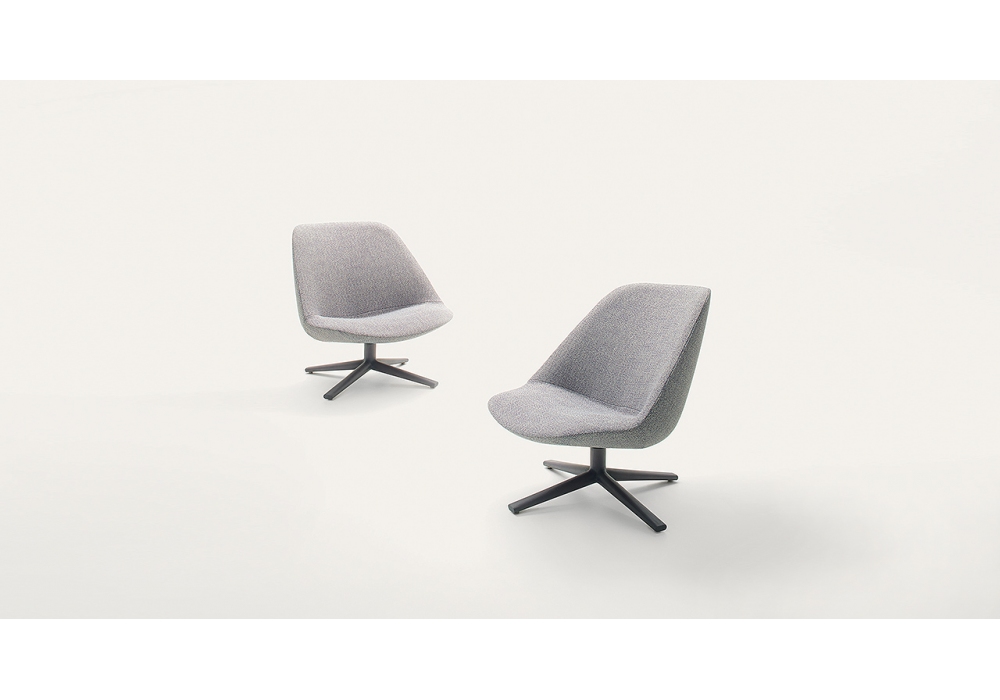 Adele diseñada por Francesco Rota para Paola Lenti es una butaca giratoria con patas de acero, asiento y respaldo acolchados en poliuretano y revestimiento disponible en una selección de tejidos.