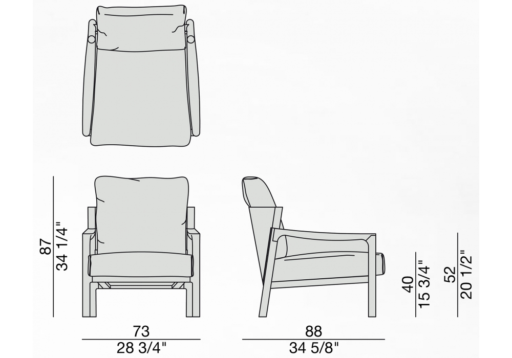Bajo pedido posibilidad de elegir telas diferentes para los cojines de asiento y respaldo.