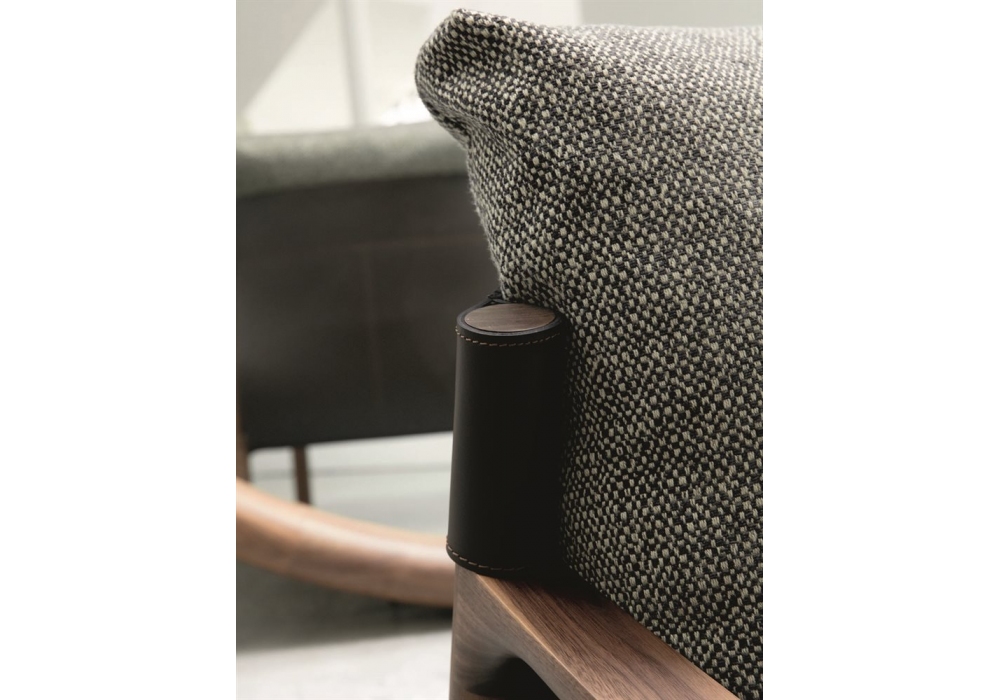 Vera diseñada por Gabriele & Oscar Buratti para Porada es una butaca con estructura en nogal canaletto, respaldo en cuoietto y tapizado en tejido.