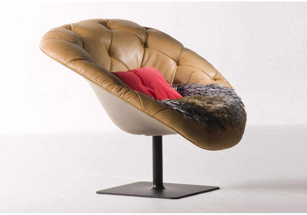 Bohemian is the seats collection designed by Patricia Urquiola for Moroso. Taking on button tufting, giving it a new spin, revolutionizing the concept, Patricia Urquiola has designed a range of products which appear to be liquid in shape as if they are melting over their frame to create soft, comforting, almost casual lines where the fabric or leather are fixed to the shell using press studs. The pieces appear to have a shawl draped over their shoulders, and the seat has various overlapping cushions: an almost obsessive attention to the design of its covering, layering leathers and other materials, colours, and fabric types. A sort of luxury patchwork which, when worn, gives the piece a nomadic, global spirit.
