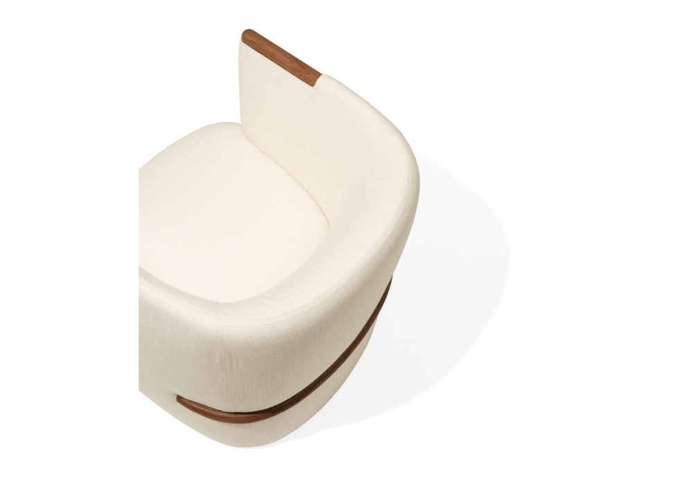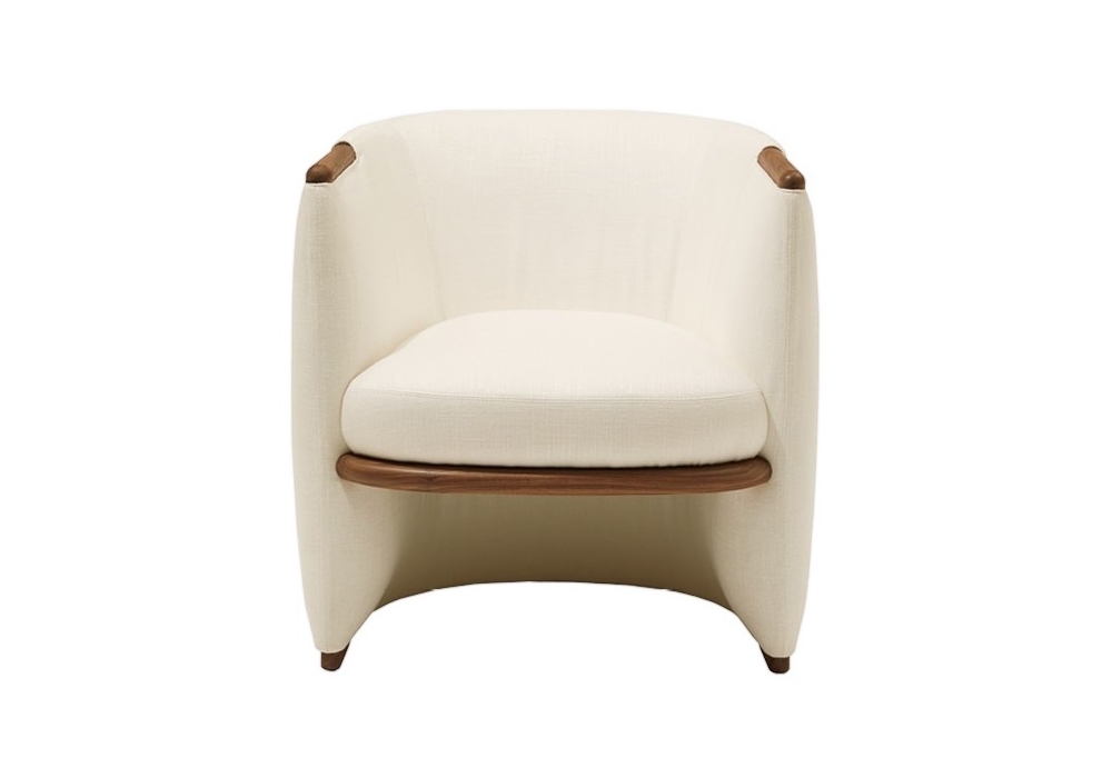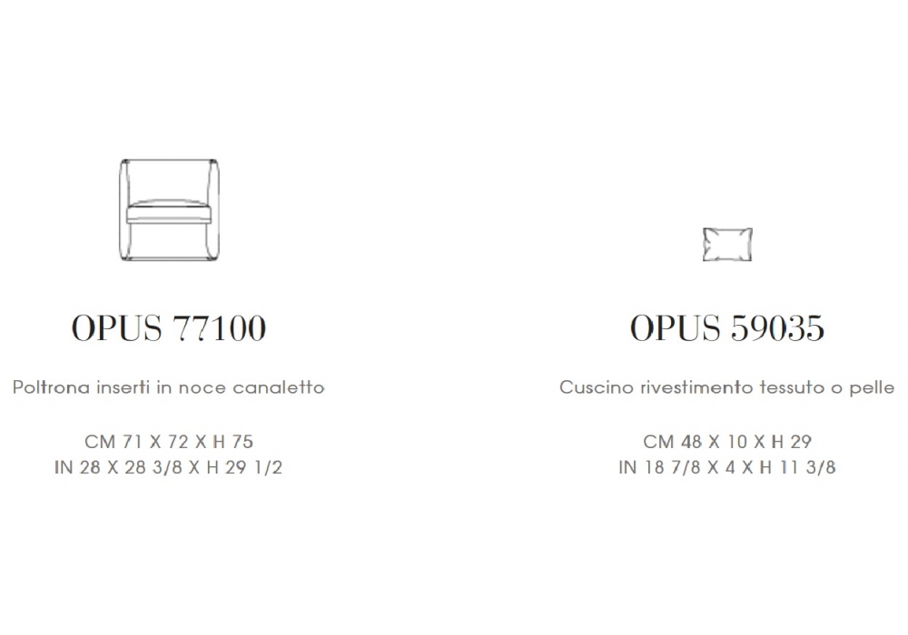 Opus diseñado por Carlo Colombo para Giorgetti es un sillón con inserciones realizadas en madera maciza de nogal Canaletto y revestimento en tejido o piel.