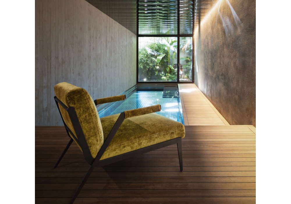 Lima es un sillón diseñado para nicoline. La estructura en madera y metal. Acolchado en poliuretano expandido cubierto con tecnoform. Cubierta en tela o cuero. Base en metal pulido, satinado, bronce, latón satinado y bronce antiguo.