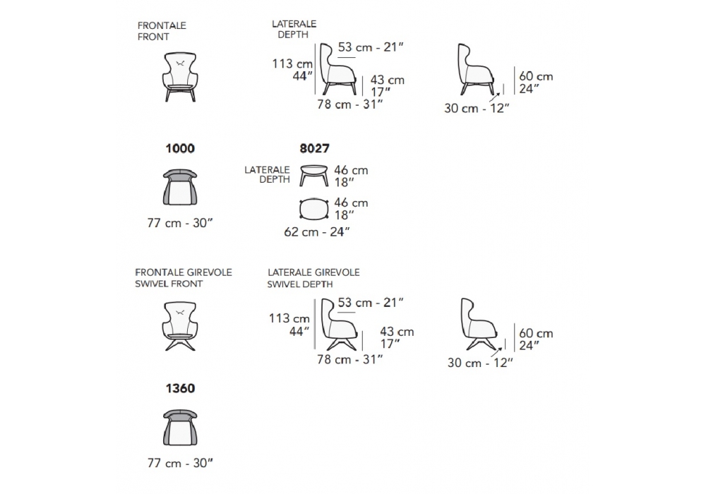 Iseo es un sillón diseñado para nicoline. La estructura en madera y metal. Relleno de poliuretano espumado en frío. Cubierta en tela o cuero. Disponible con base fija o giratoria en madera de haya pintado en tres colores. Disponible con costuras de contraste.