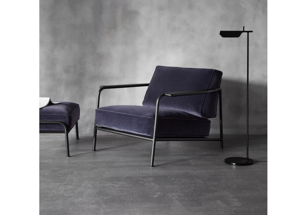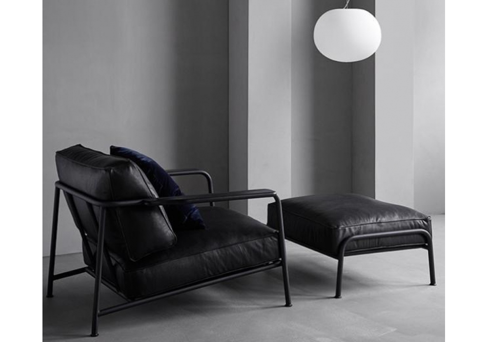 Aero diseñado por 365 North para wendelbo es un sillón bajo con estructura en acero con recubrimiento en polvo negro y madera contrachapada con acolchado en espuma en poliuretano. Cojín del asiento acolchado con espuma resistente y respaldo acolchado con pluma y fibras. Patas en acero con recubrimiento en polvo negro. Revestimiento en piel o tejido disponible en diferentes acabados.