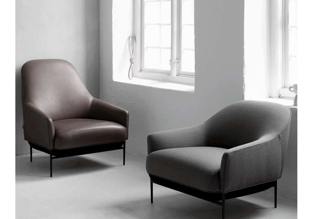 Chill diseñado por 365 Nort para Wendelbo es un sillón con patas en acero recubierto en polvo negro y acolchado con espuma de alta resistencia. Revestimiento en piel o tejido. Disponible en 2 modelos.