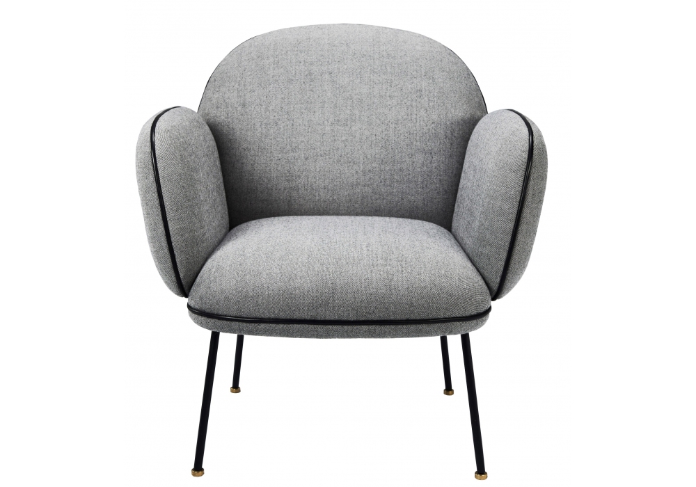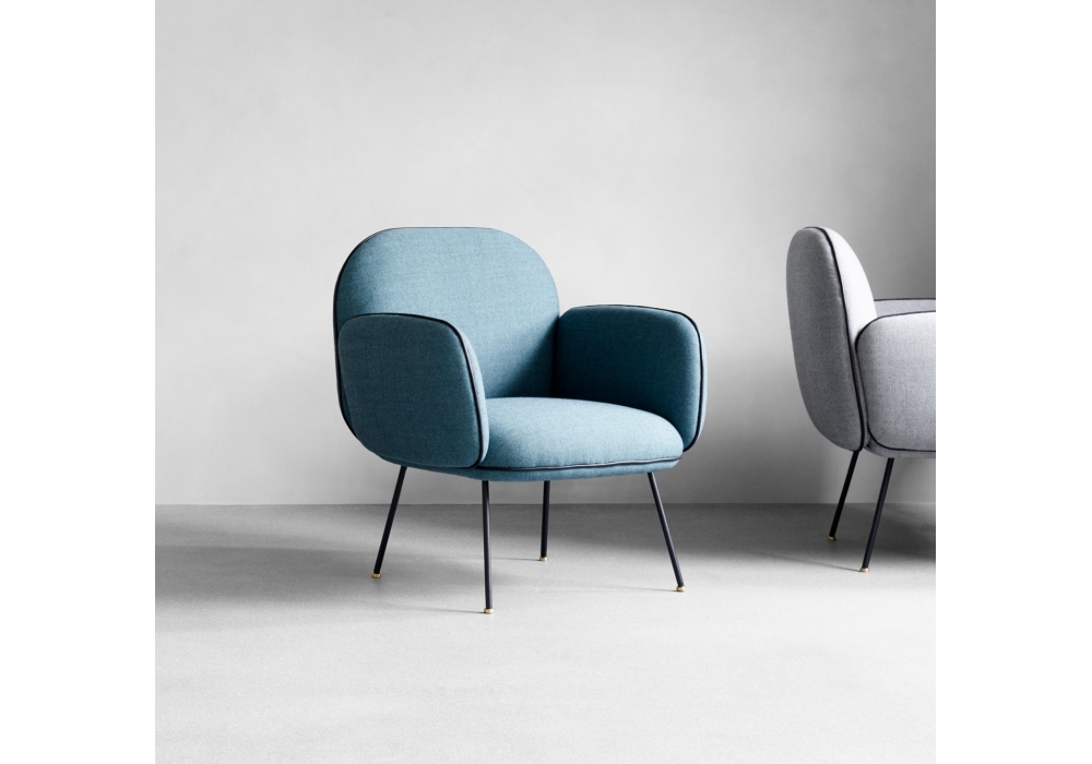 Ollie diseñada por Susanne Grønlund para wendelbo es una butaca con patas en acero con recubrimiento en polvo negro y detalles en latón chapado. Acolchado en espuma de alta resistencia y revestimiento en piel o tejido.