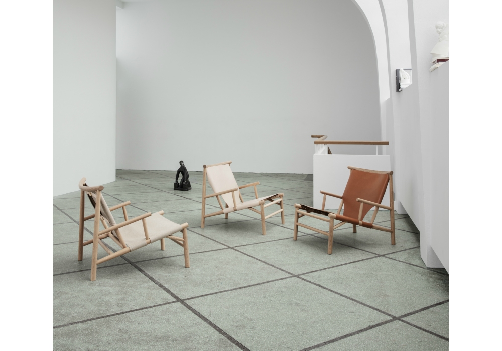 Samurai Chair diseñada por Kristian Sofus Hansen y Tommy Hyldahl para Norr11 es un sillón con estructura en madera de roble natural sólido, con asiento y respaldo en cuero que se dobla alrededor de la silla que asiento de soporte comodidad.