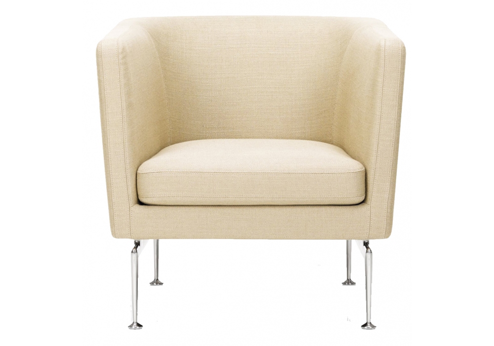 Suita Club diseñado por Antonio Citterio para Vitra es un sillón con base de aluminio fundido a presión con acabado brillante o con recubrimiento de polvo y tapicería de tela o cuero. Cojín de respaldo no incluido.
