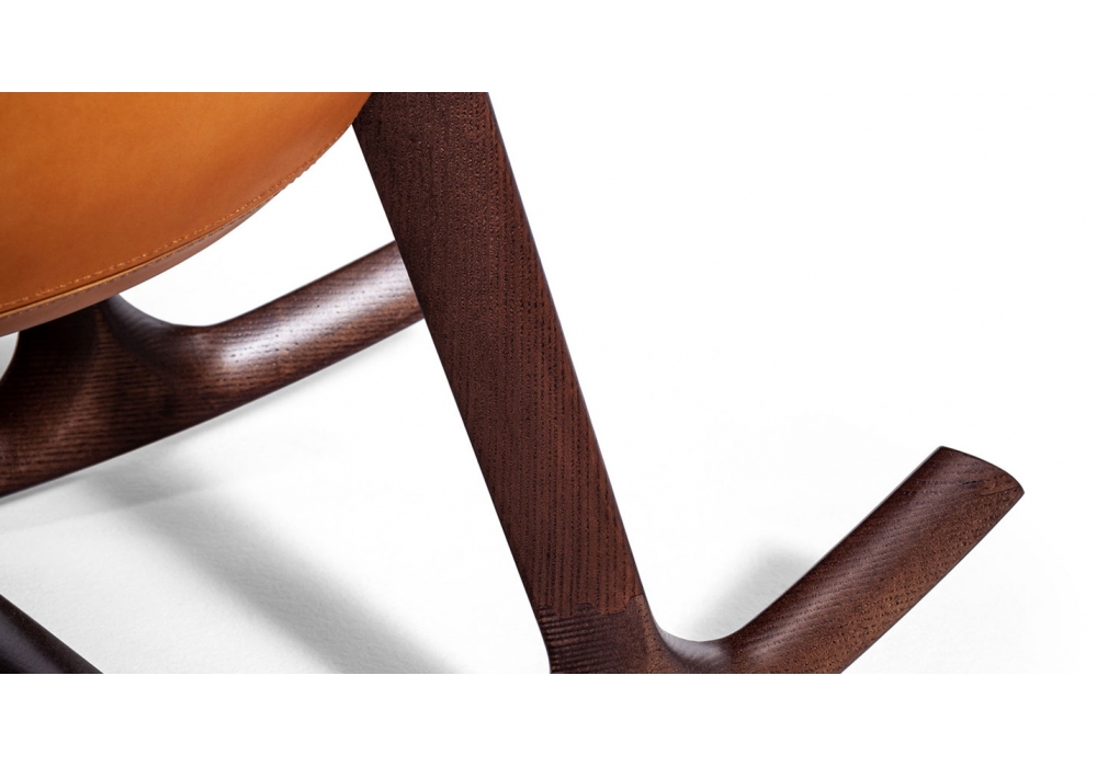 Martha diseñada por Roberto Lazzeroni para Poltrona Frau es un sillón mecedora con carcasa de poliuretano rígido moldeado. Carcasa externa tapizada en cuero Saddle Extra, mientras que la superficie interna está disponible en cuero Pelle Frau.