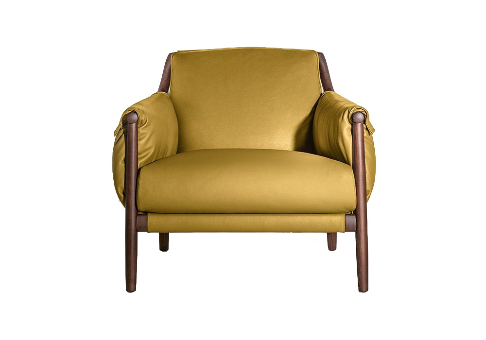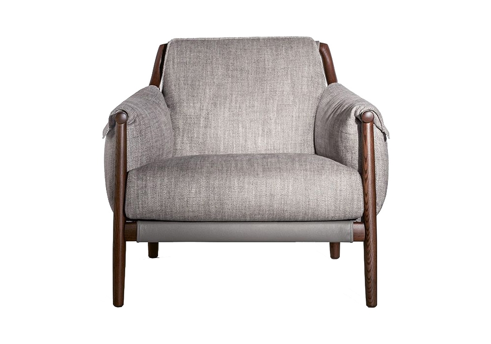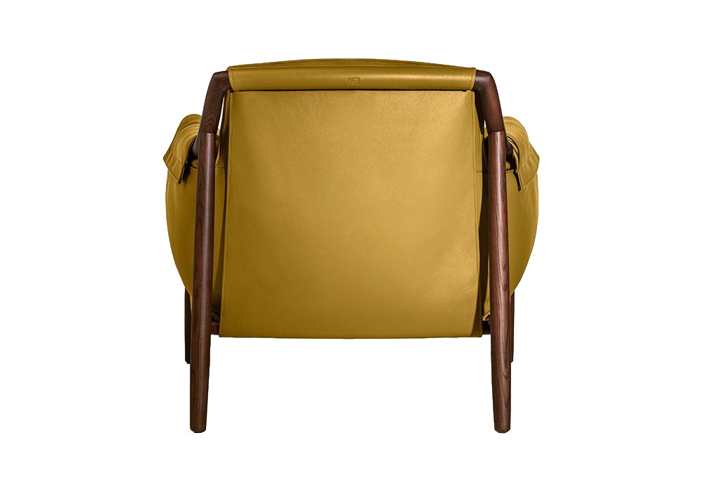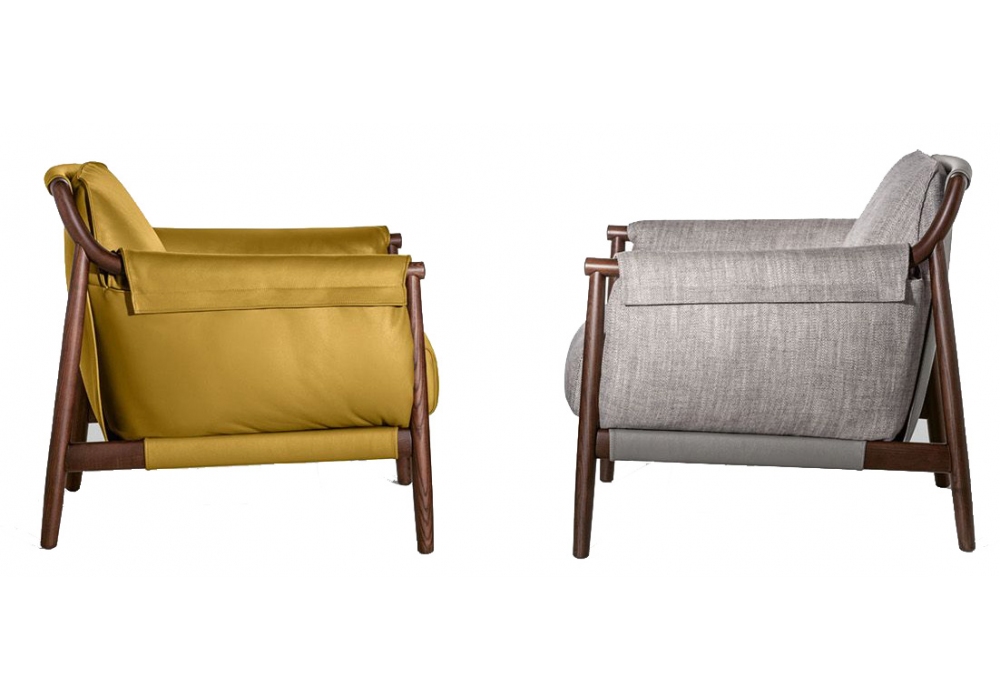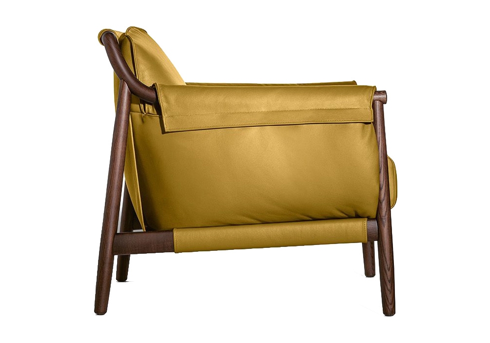 Times Lounge, diseñado por Spalvieri & Del Ciotto, es una butaca con estructura de madera maciza de fresno y tapizado en cuero o en combinación cuero / tela. El soporte de los cojines está garantizado por la superficie de cuero que envuelve la parte inferior, lateral y superior de la estructura de madera.