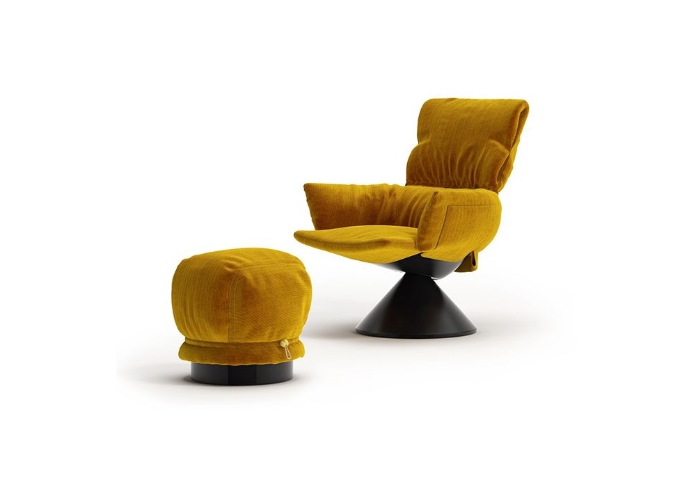Lud'o Lounge diseñada por Patricia Urquiola para Cappellini es una butaca con base cónica pintado con polvo epoxi negro mate. Revestimiento desenfundable en tejido o piel.