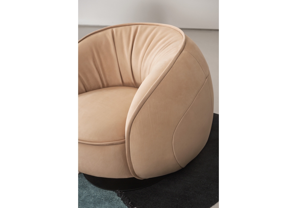 Leon diseñado por Draga&Aurel para Baxter es un sillón con estructura de madera contrachapada y MDF, base giratoria en metal pintado negro mate.