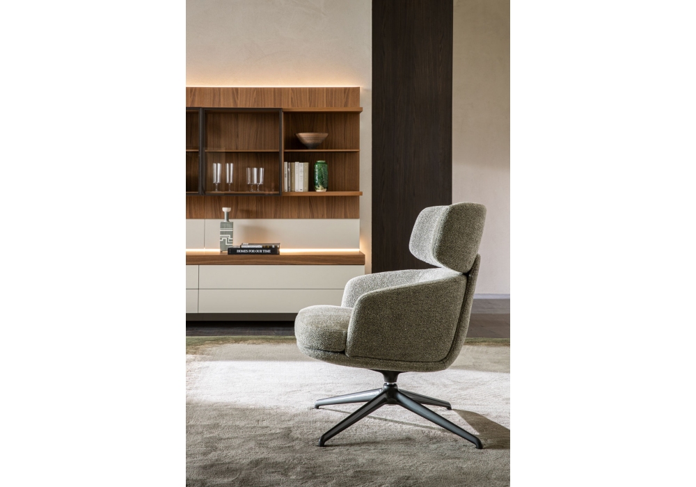 Piccadilly diseñado por Rodolfo Dordoni para Molteni&C es un butaca realizado con base giratoria en aluminio o peltre y tapizado en tela o cuero en diferentes acabados. Disponible con respaldo bajo o respaldo alto.