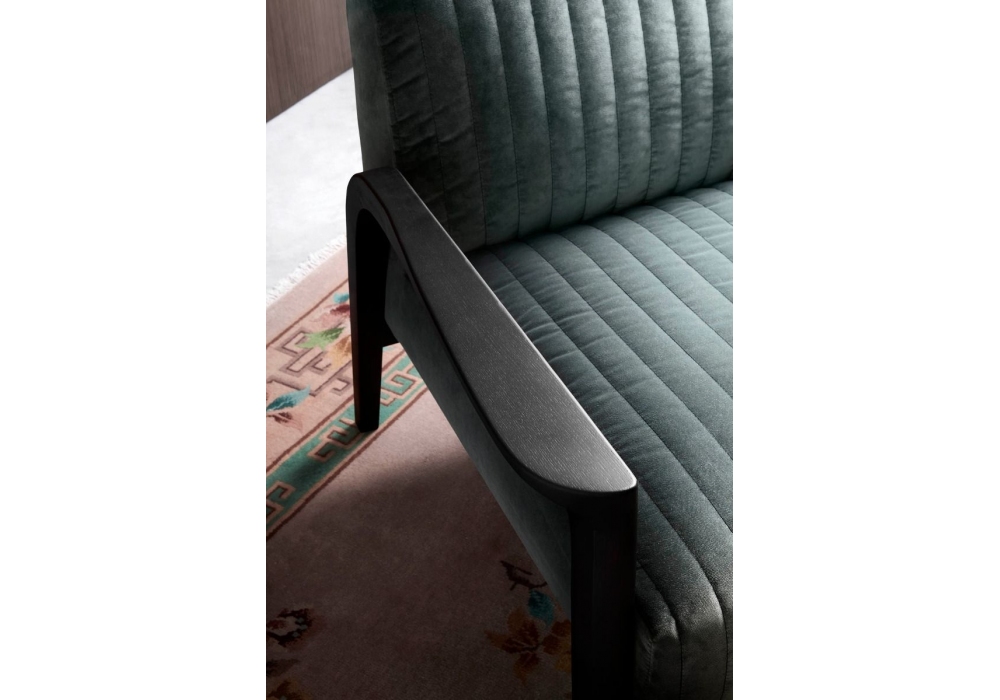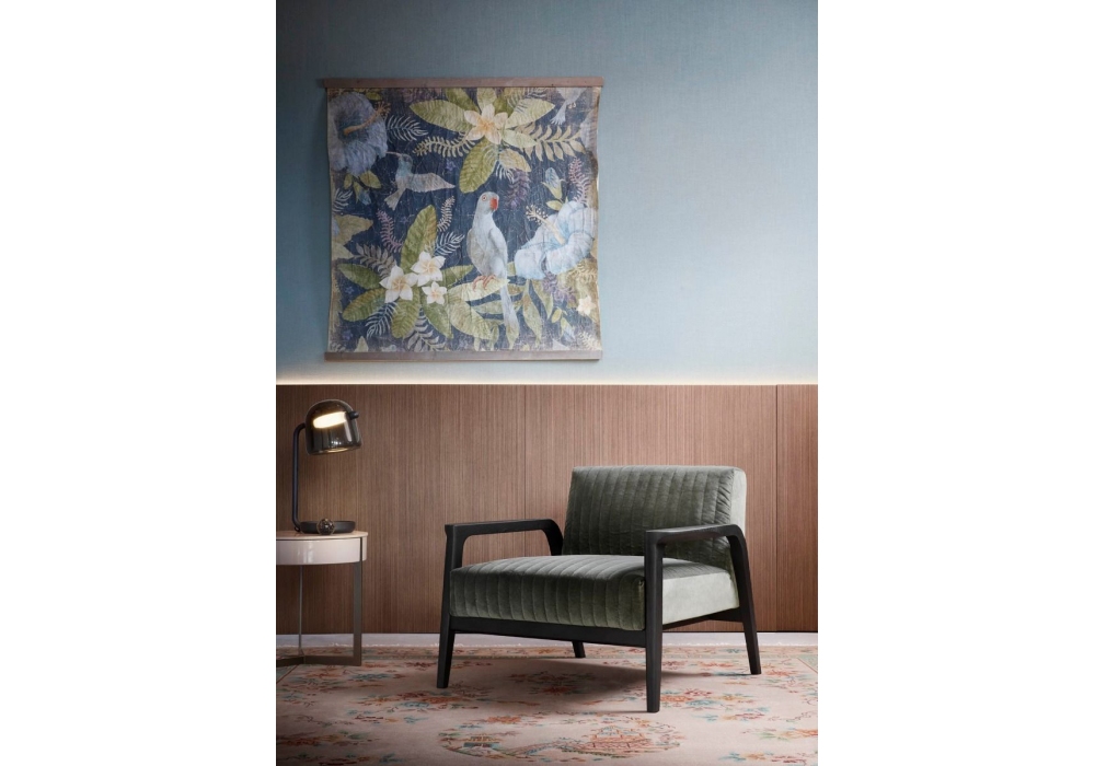 Tarsia diseñada por Matteo Nunziati para Lema es una butaca realizada con estructura de fresno teñido de roble tratado térmicamente y tapizado desenfundable en tela o piel. Disponible en diferentes acabados y con costuras verticales.