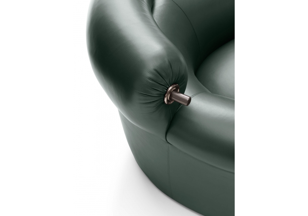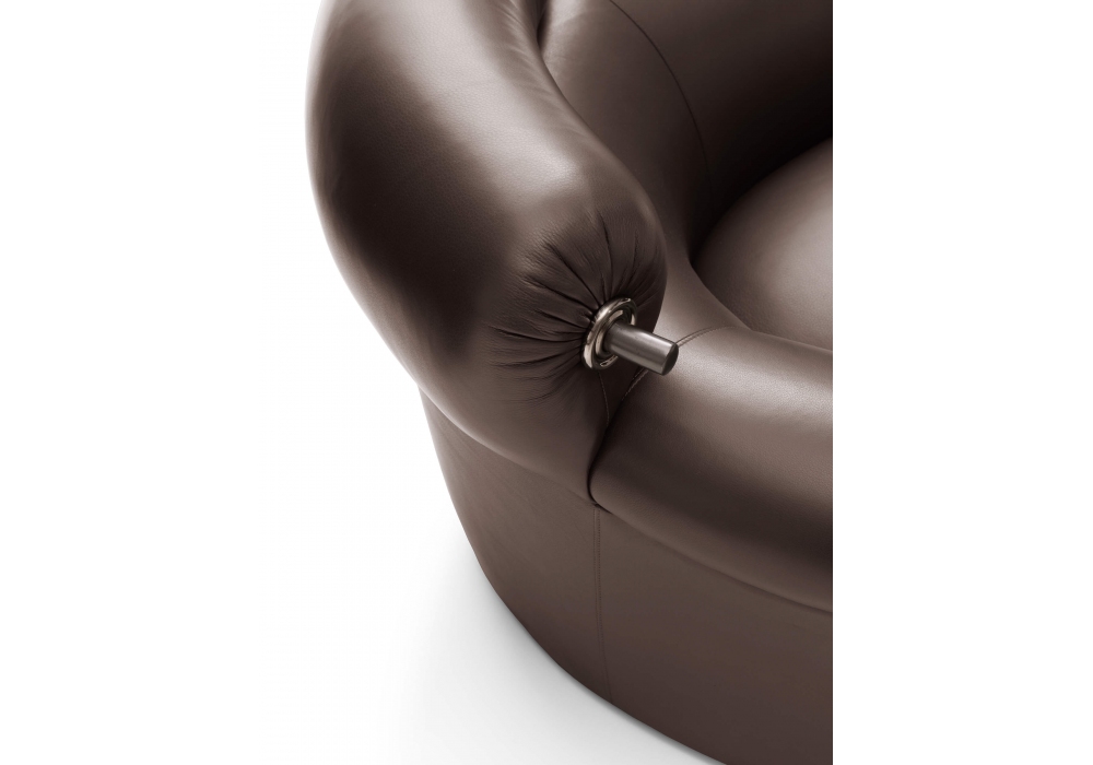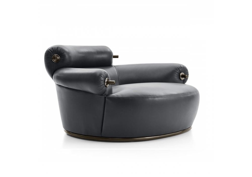 Toro diseñado por Luigi Caccia Dominioni para Azucena es una butaca, con tapizado disponible en diferentes materiales. Base con acabado gris metalizado y tachuelas con acabado bronce.