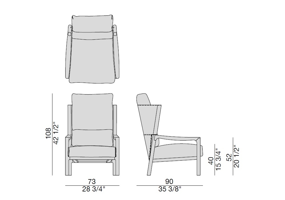 Bajo pedido posibilidad de elegir telas diferentes para los cojines de asiento y respaldo.