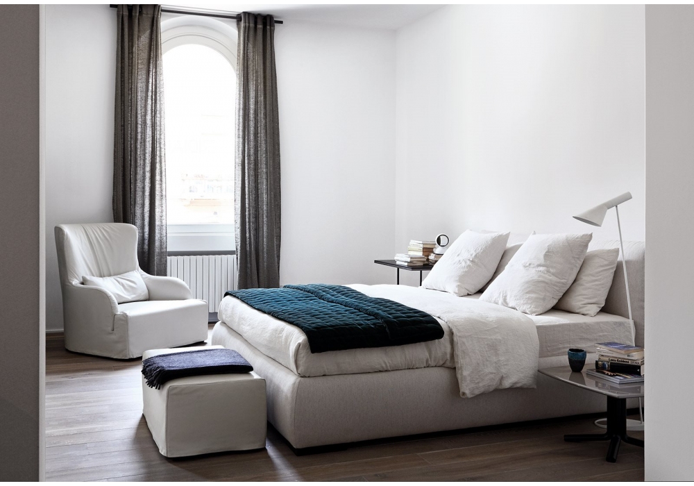 Liu diseñada por Andrea Parisio para Meridiani es una bergère con estructura de madera y acolchado de poliuretano indeformable. Patas de madera teñida black. Riñonera en pluma soportada. Revestimiento disponible en tejido o piel.