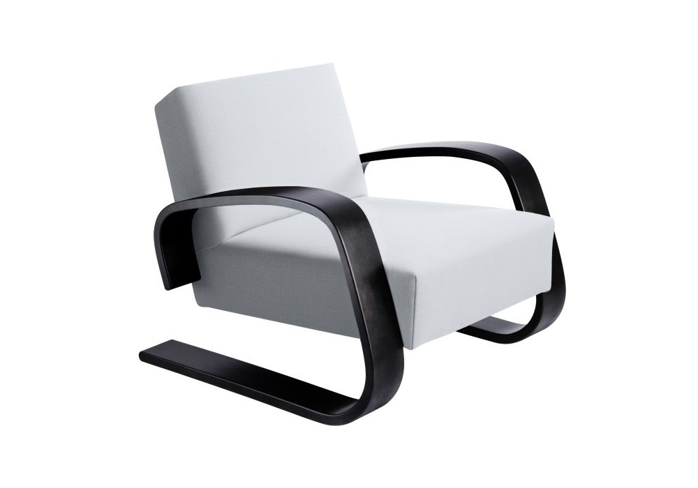 Armchair 400 "Tank" diseñada por Alvar Aalto para Artek es una butaca realizada con tapizado en tela o cuero y estructura teñida o lacada. Disponible en diferentes acabados.