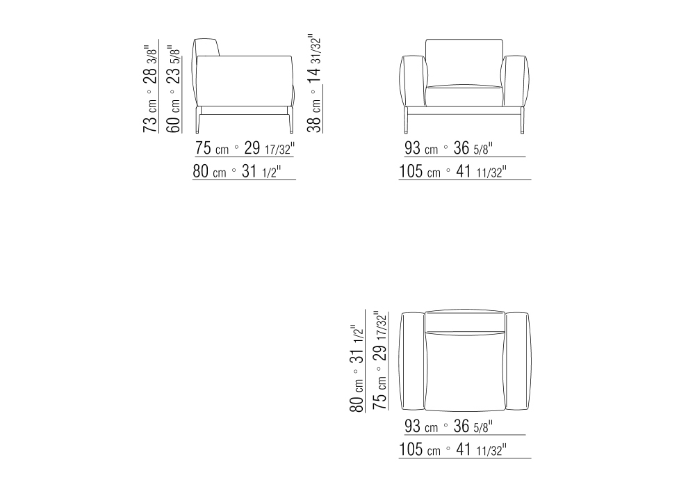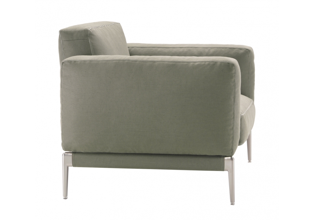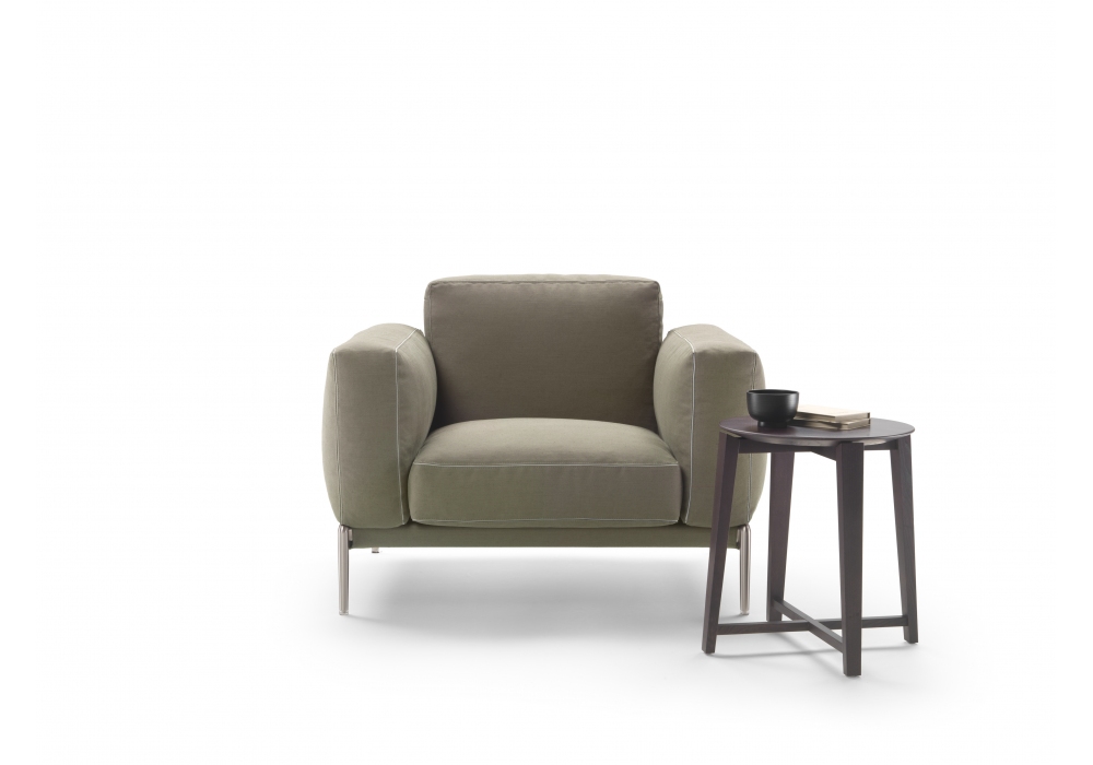 Romeo Compact diseñado por Antonio Citterio para Flexform es un sillón compuesto por una estructura de metal acolchado con poliuretano, respaldo y reposabrazos de metal acolchado con poliuretano y plumón de ganso, pies de aluminio y tapizado de cuero o tela.