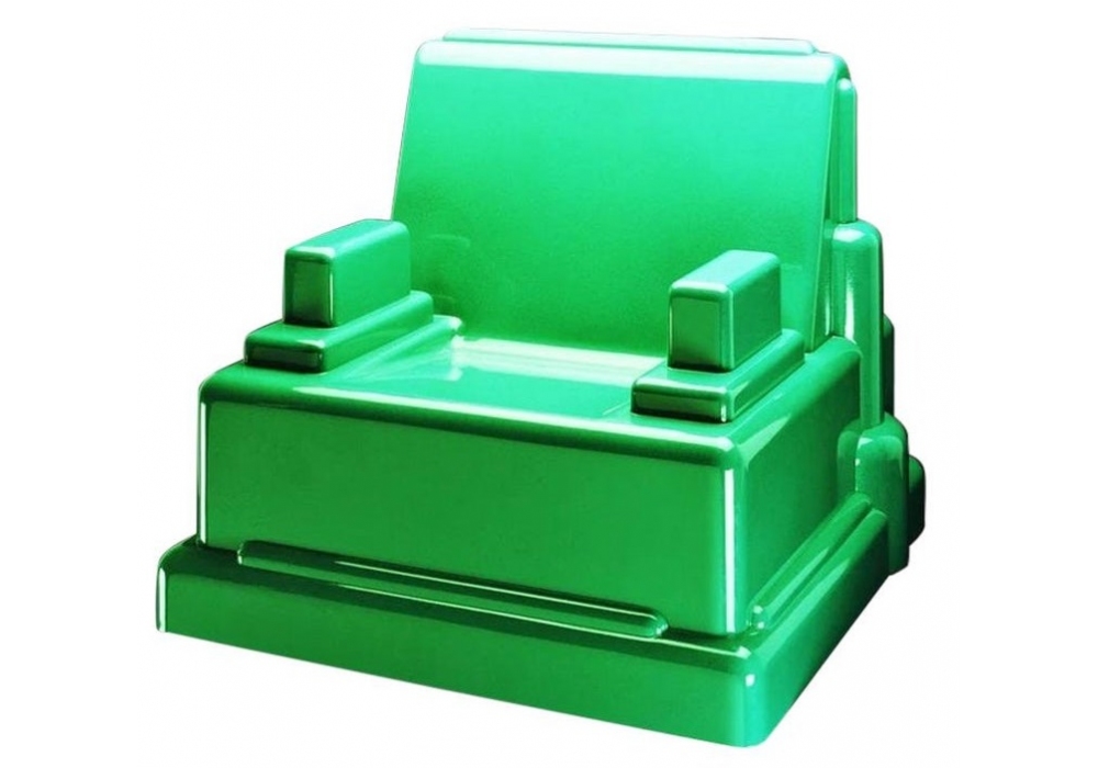 Roma diseñada por Marco Zanini para Memphis Milano es una butaca realizada en fibra de vidrio pintada iridiscente.