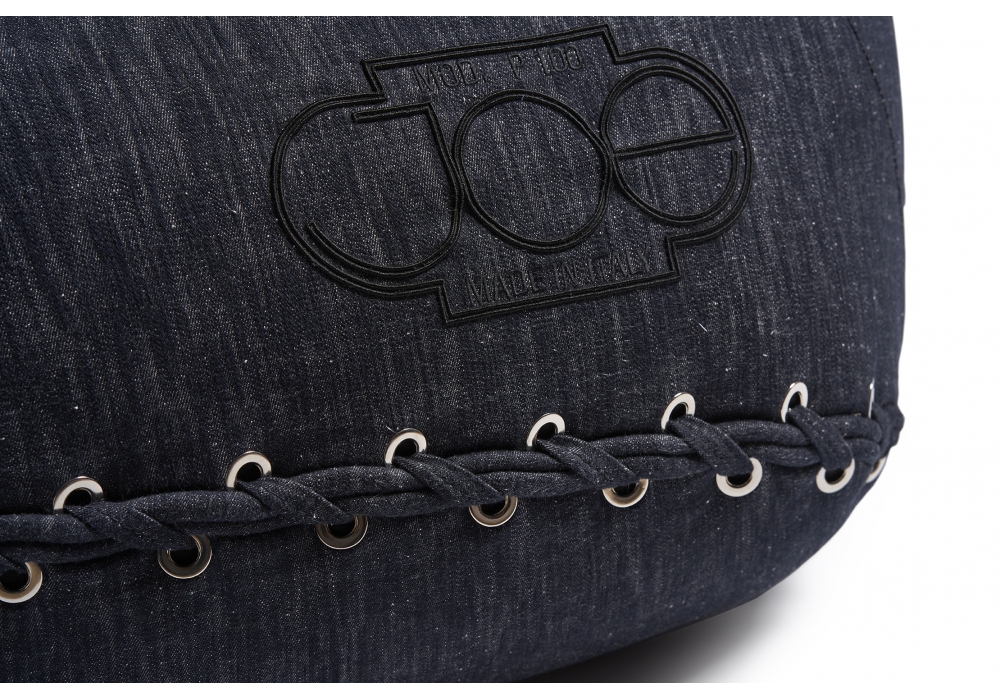 Joe Jeans diseñada por De Pas, D'Urbino, Lomazzi para Poltronova es una butaca montada sobre ruedas invisibles realizada con estructura de acero, acolchado en poliuretano preformado y revestimiento en jersey de algodón y seda de alta calidad.
