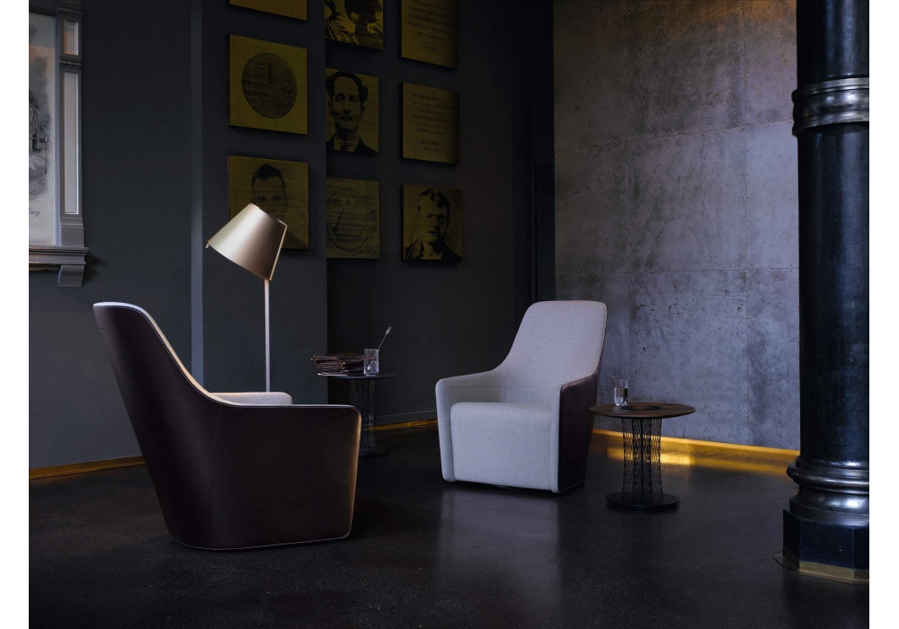 Foster 520 diseñado por Foster + Patners para Walter Knoll es un sillón con placa de zócalo barnizada en negro. Revestimiento disponible en tela o piel, la parte interior y exterior se puede tapizar en diferentes colores y materiales.