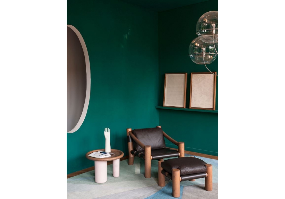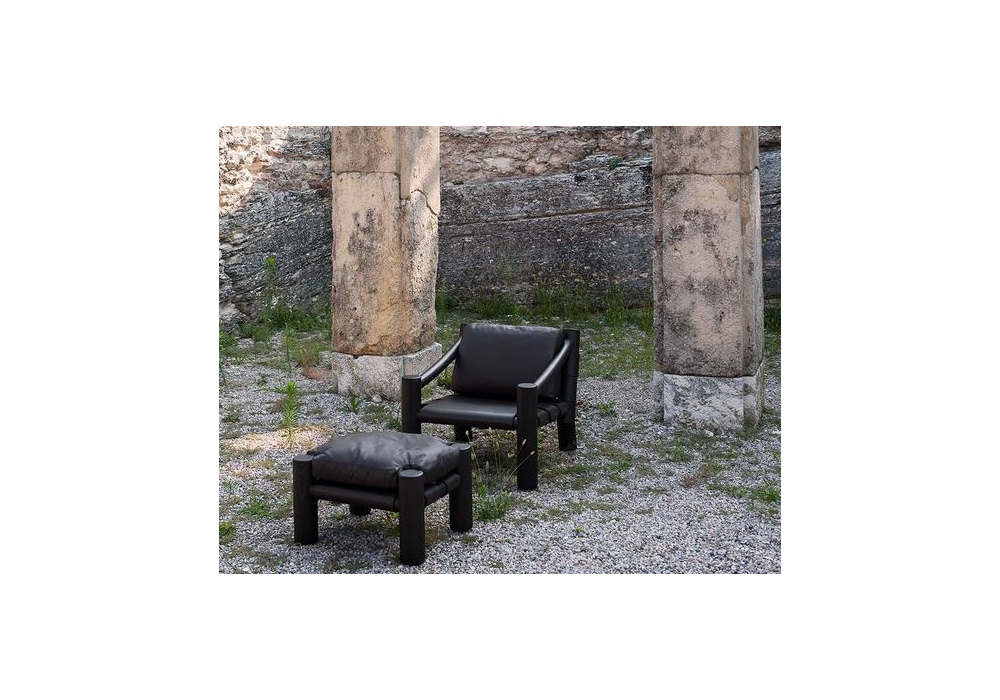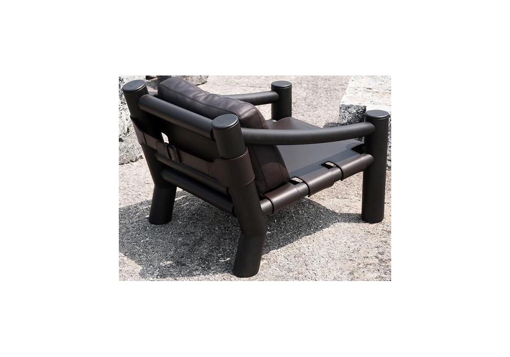 Elephant diseñado por Karen Chekerdjian para Tacchini es un sillón con estructura en madera maciza pulida. El asiento es de piel artesanal, con un cojín de pluma de ganso tapizado en piel, en diferentes colores.