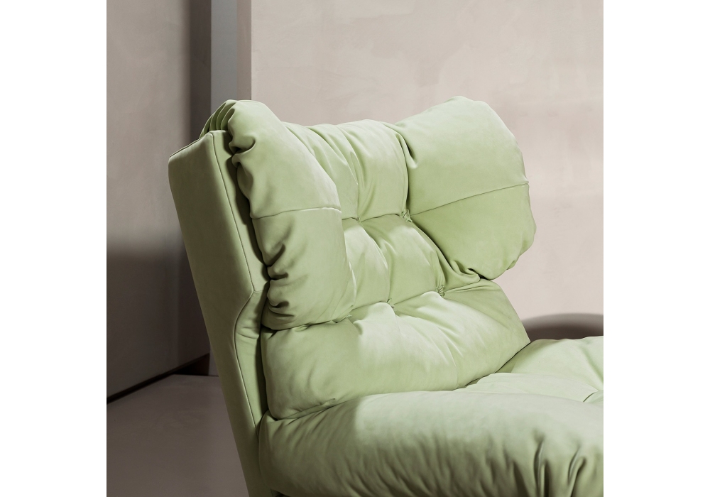 Milano diseñada por Paola Navone para Baxter es una butaca bergère con estructura en contrachapado de abedul, pino y abeto. Acolchado en espuma de poliuretano de densidad diferenciada con revestimiento de fibra acrílica. Resorte con correas elásticas tejidas en caucho revestido. Decoración con piel del mismo color y anhelo a juego o blanco/rojo. Base giratoria en metal barnizado negro mate. Disponible solo en pieles suaves.