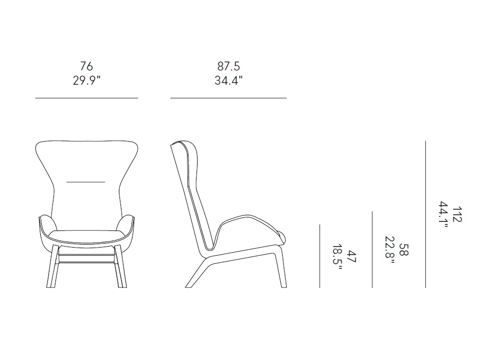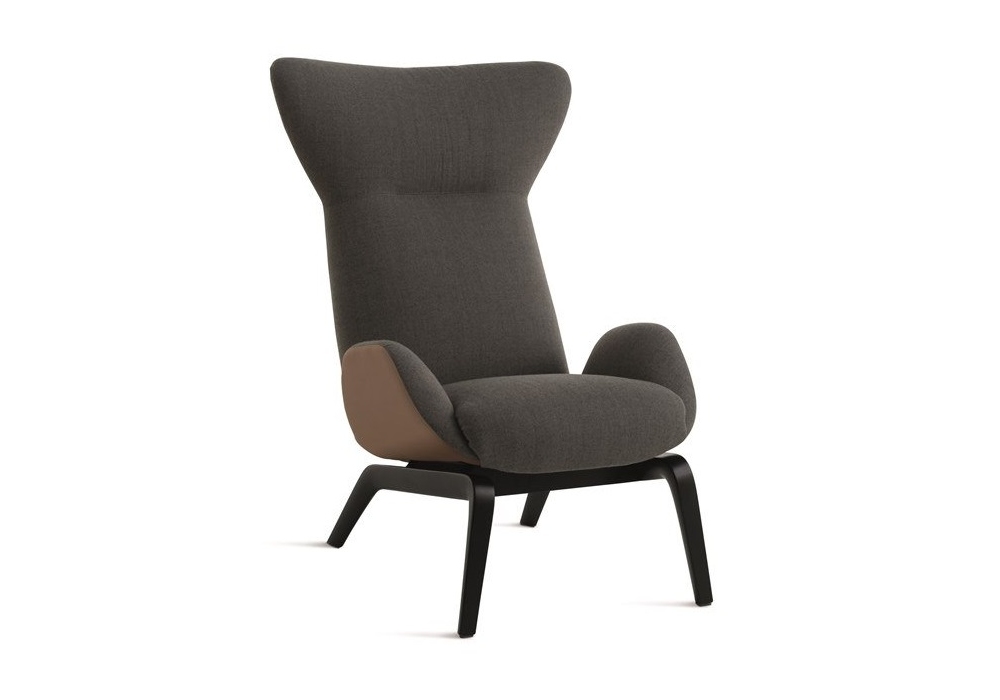 Soho diseñada por Studio Balutto para Casamania & Horm es una butaca realizada con base en fresno macizo negro, carcasa en espuma de poliuretano espumado en frío ignífugo y revestimiento en piel, ecopiel tela. El revestimiento puede ser monocromática (anverso y reverso iguales) o bicolor.