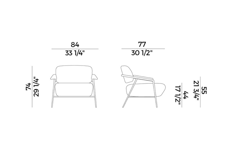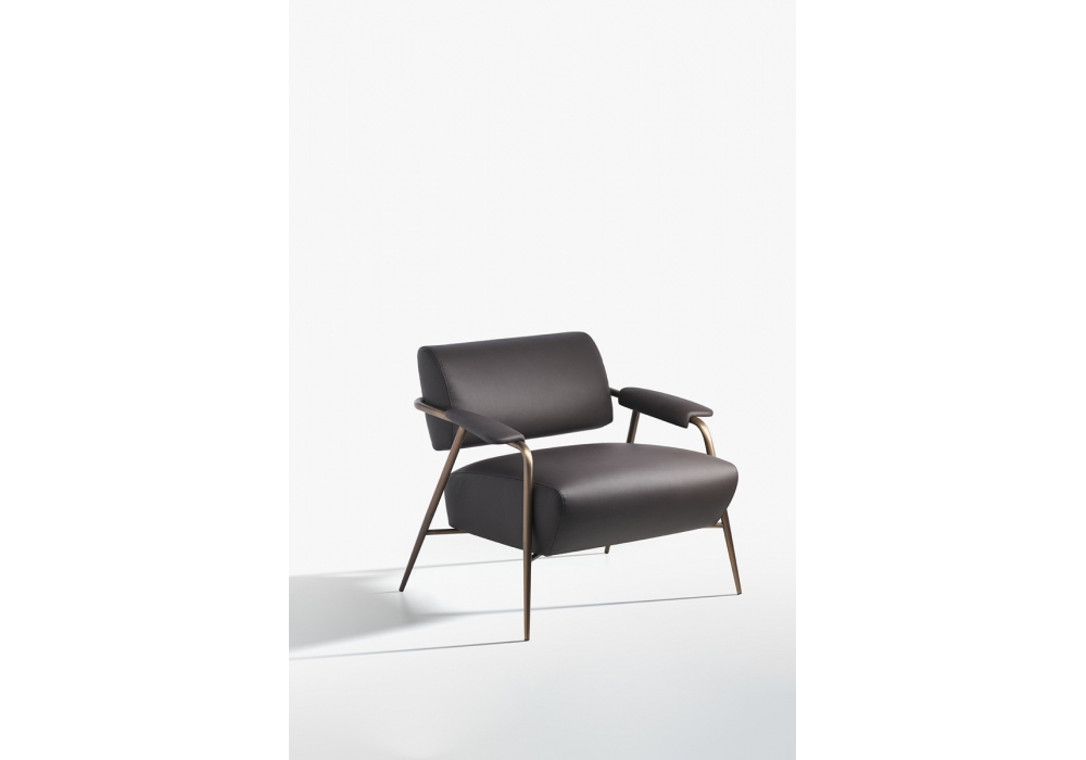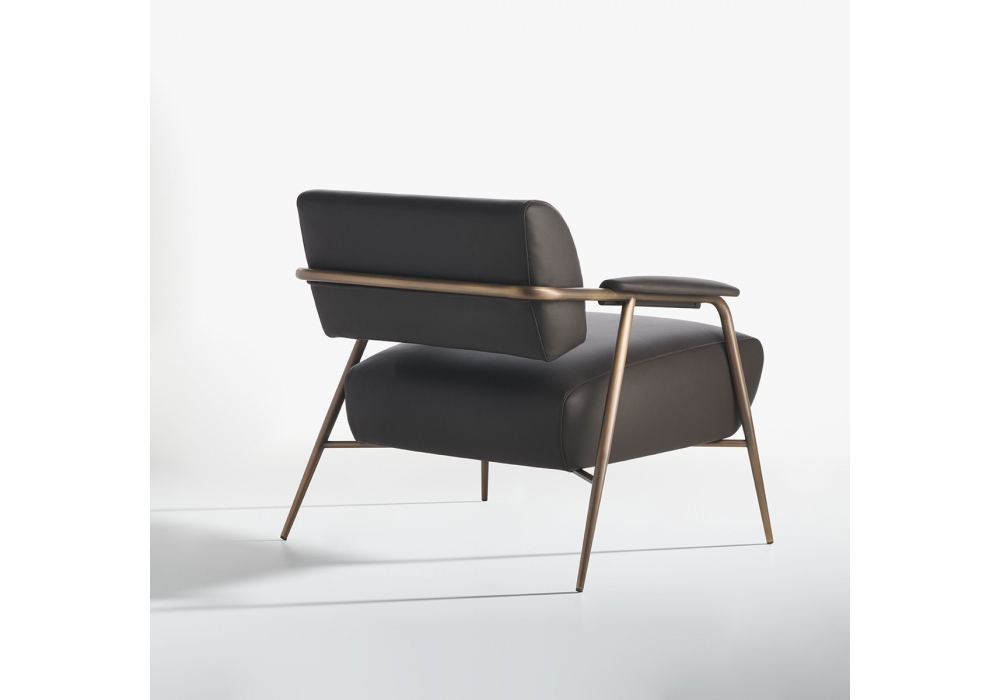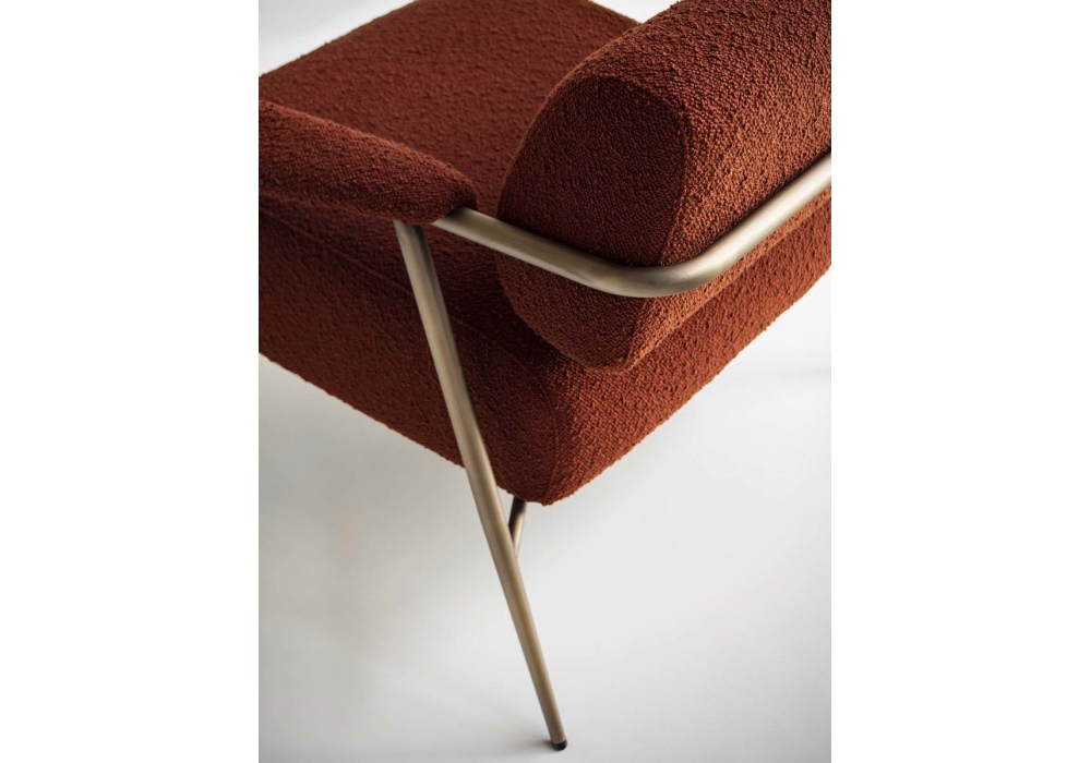 Stay diseñada por StorageMilano para Potocco es una butaca con estructura tubular de metal en diferentes acabados. El asiento y el respaldo están acolchados con espuma de poliuretano ignífuga y revestidos de varios tipos de tejido, piel o ecopiel.