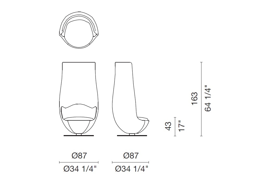 Wanders’ Tulip Armchair diseñada por Marcel Wanders para Cappellini es una butaca giratoria con base de metal. Relleno de espuma y espuma de poliuretano y revestimiento de tela o piel.