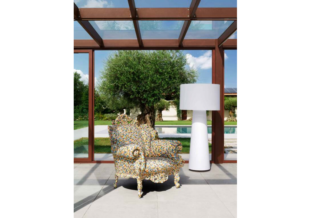 Proust diseñada por Alessandro Mendini para Cappellini es una butaca con estructura de madera y revestimiento en tejido multicolor.